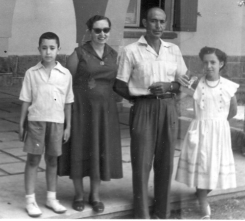 1953 en Sobrón (residencia estival de Educación y Descanso) con mis padres y mi hermana [ Imagen Plena: 60K JPEG, 667x600 ]